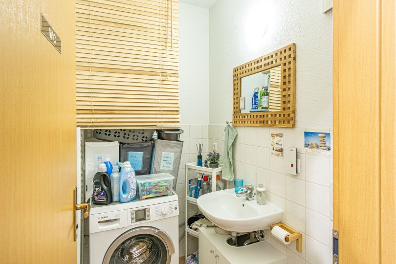 Die Wohnung wurde laufend gepflegt und modernisiert. 2018 wurde eine moderne Einbauküche installiert, die bereits im Kaufpreis enthalten ist. Das Tageslichtbad ist hell gefliest und bietet sowohl eine Badewanne als auch eine Dusche. Zusätzlich steht ein separates Gäste-WC zur Verfügung, das zugleich als Hauswirtschaftsraum mit Waschmaschinenanschluss genutzt wird. Ein gepflegtes Treppenhaus, ein großzügiger Kellerraum sowie ein Trockenraum im Untergeschoss sorgen für zusätzlichen Komfort. Die Beheizung erfolgt zentral.
