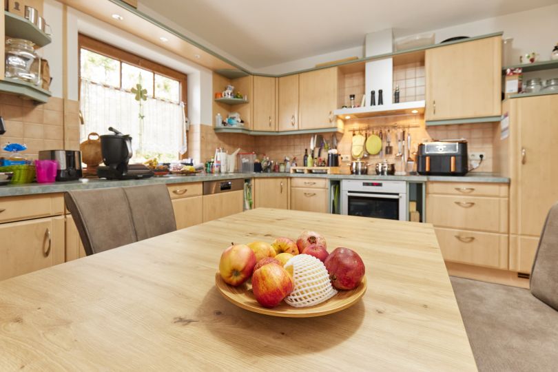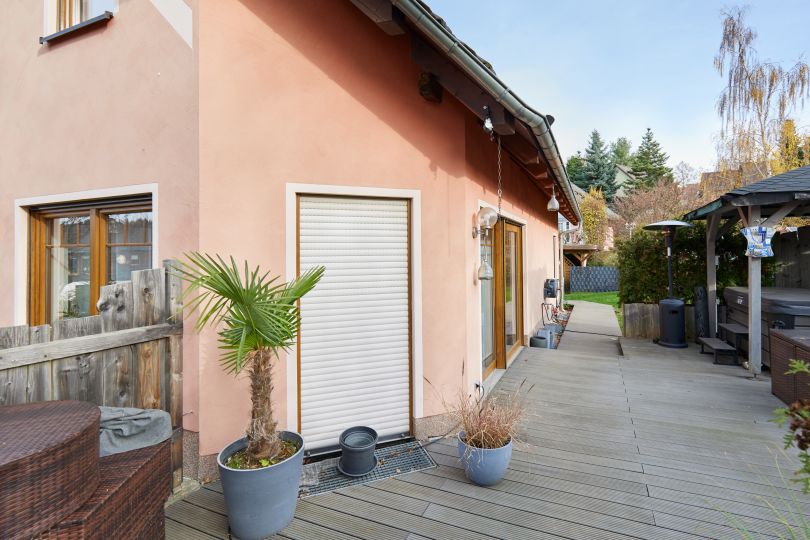 Top-Zustand, modernes Tageslichtbad und Gästebad, zeitlose Fußbodenbeläge, Einbauküche, Whirlpool im Garten, pflegeleichter Garten, Gästebereich im Untergeschoss, Garage, Carport und 3 Außenstellplätze, naturnahe, ruhige Lage