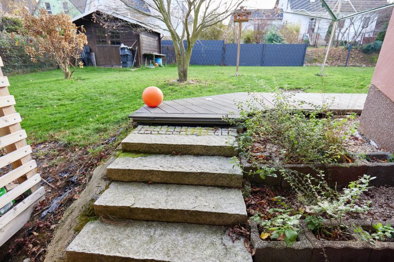 Der Garten ist pflegeleicht angelegt und bietet mit dem Whirlpool ein besonderes Extra für entspannte Stunden zu Hause. Das Grundstück lässt genügend Raum für individuelle Gestaltung, bleibt aber gleichzeitig leicht zu bewirtschaften.