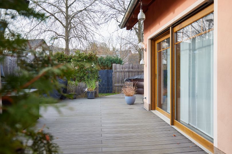Das im Jahr 2003 errichtete Einfamilienhaus präsentiert sich in einem äußerst gepflegten und modernisierten Zustand. Auf ca. 171 m² Wohnfläche entsteht ein komfortables und gut durchdachtes Raumangebot mit aktuell vier Zimmern, das sich bei Bedarf erweitern lässt. Großzügige Fensterflächen, warme Holzakzente und zeitlose Bodenbeläge sorgen für eine angenehme Wohnatmosphäre.