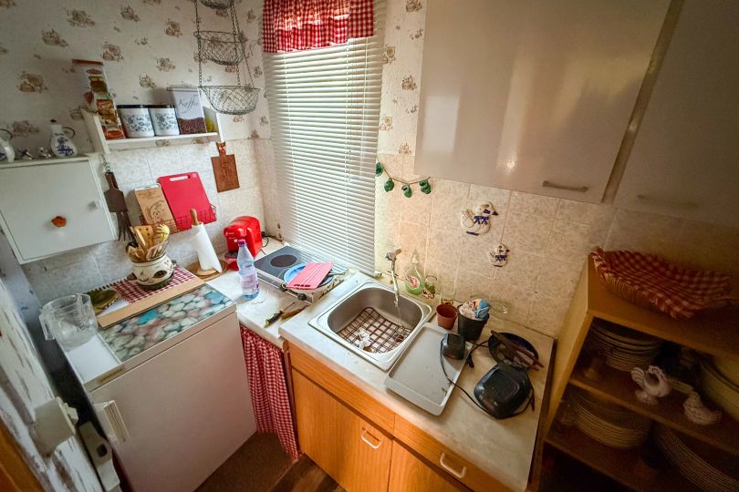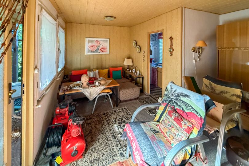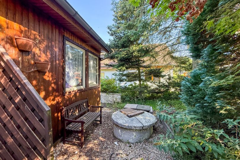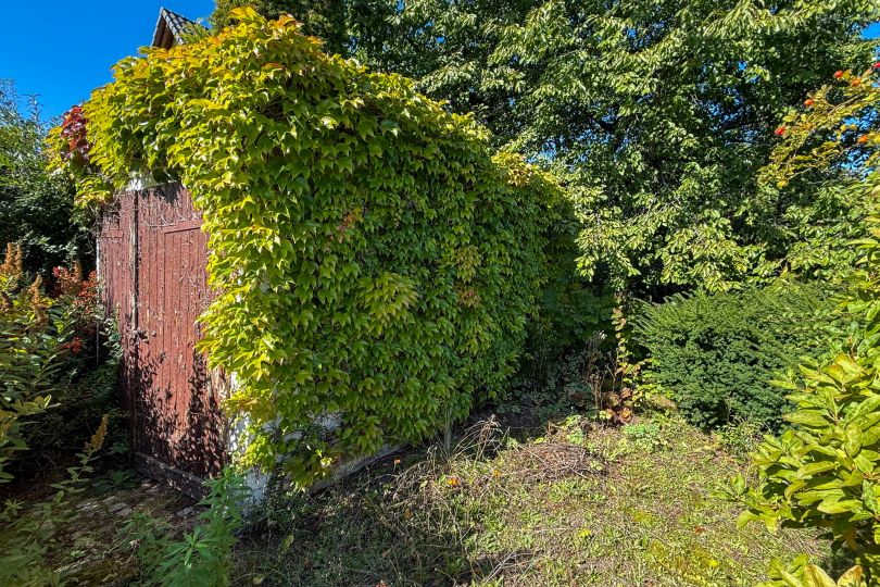Auf dem ca. 660 m² großen Grundstück steht ein klassischer DDR-Bungalow vom Typ B34 mit einer Nutzfläche von etwa 34 m². Das Gebäude befindet sich in sanierungsbedürftigem Zustand und eignet sich ideal für Käufer, die das Objekt nach eigenen Vorstellungen modernisieren oder für eine Neubebauung nutzen möchten. Das Grundstück selbst zeigt sich verwunschen eingewachsen, mit altem Baumbestand, Sträuchern und mehreren Obstbäumen — ein seltener Charakter, der dem Areal eine besondere Atmosphäre verleiht. Ein eigener Brunnen ist vorhanden und erweitert die Nutzungsmöglichkeiten des Grundstücks.