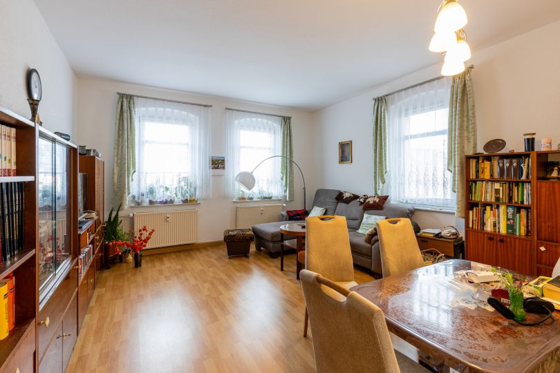 Das Objekt befindet sich in zentraler Lage von Lugau, einer lebenswerten Kleinstadt zwischen Chemnitz und Stollberg. Die Stollberger Straße ist eine der Hauptachsen des Ortes und bietet eine hervorragende Sichtbarkeit für gewerbliche Nutzer sowie eine komfortable Erreichbarkeit für Bewohner und Kunden. Alle wichtigen Einrichtungen wie Einkaufsmöglichkeiten, Schulen, Kindertagesstätten und medizinische Versorgung befinden sich in unmittelbarer Umgebung. Durch die Nähe zur B180 und die schnelle Anbindung an die A72 ist die Region verkehrstechnisch ideal erschlossen. Chemnitz ist in rund 20 Minuten erreichbar, ebenso die Städte Stollberg, Hohenstein-Ernstthal und Oelsnitz. Öffentliche Verkehrsmittel sichern eine gute regionale Anbindung, während die gewachsene Infrastruktur Lugau zu einem attraktiven Wohn- und Gewerbestandort macht.