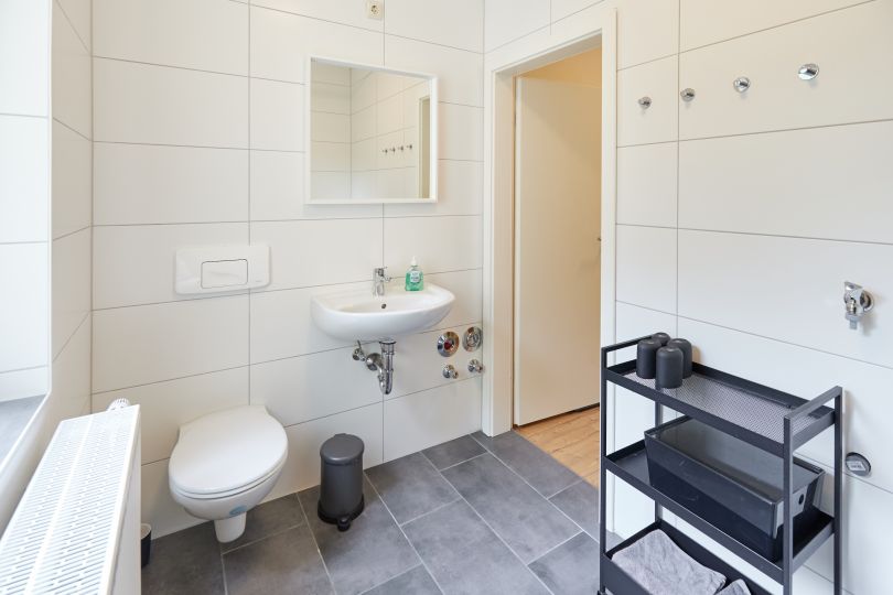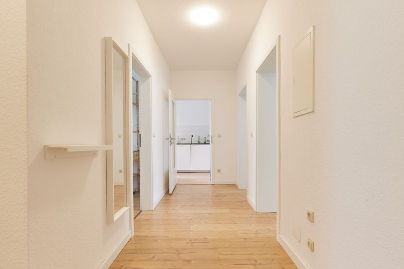 Die Bäder sind modern gefliest, teilweise mit Badewannen oder Duschen ausgestattet. Die Wohnungen variieren in Größe und Aufteilung, bieten aber jeweils praktische Grundrisse mit klarer Raumstruktur. Teilweise sind Einheiten bereits hochwertig renoviert – andere befinden sich in der finalen Phase der Sanierung.