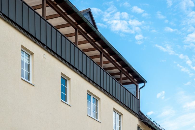 Die zum Verkauf stehende Einheit befindet sich im 2. Obergeschoss und im Dachgeschoss des Hauses und wurde ursprünglich als zwei Eigentumswohnungen geplant. Während der Bauphase wurden beide Einheiten baulich zusammengeführt und als Zahnarztpraxis ausgebaut. Seither wird die Fläche auch genau so genutzt – bestehend aus einem großzügigen Empfangsbereich, mehreren Behandlungsräumen, Nebenflächen und insgesamt drei Sanitäreinheiten. Zusätzlich gehören ein Balkon sowie eine Dachterrasse zur Einheit.