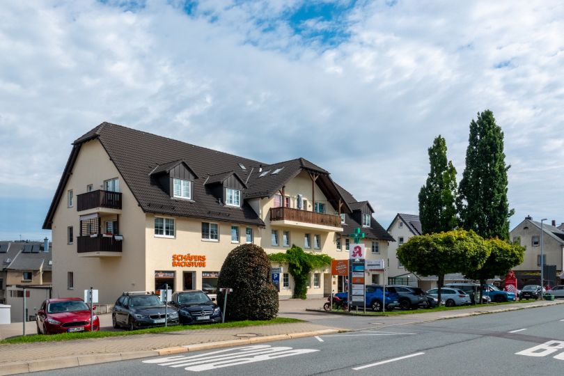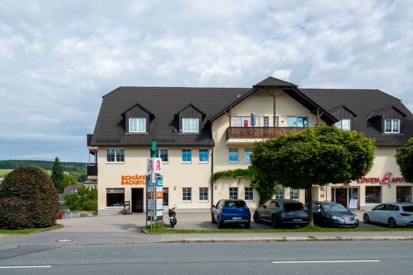 Das Gebäude steht auf einem gepflegten Grundstück mit gemischter Nutzung. Es handelt sich um ein Wohn- und Geschäftshaus, das im Jahr 1997 errichtet wurde und sich in gutem Allgemeinzustand befindet. Im Erdgeschoss befinden sich eine beliebte Bäckerei sowie eine Apotheke, die als feste Bestandteile des Quartiers zur Attraktivität des Standortes beitragen. Zu den Einheiten gehören Stellplätze, die den Nutzern zur Verfügung stehen.