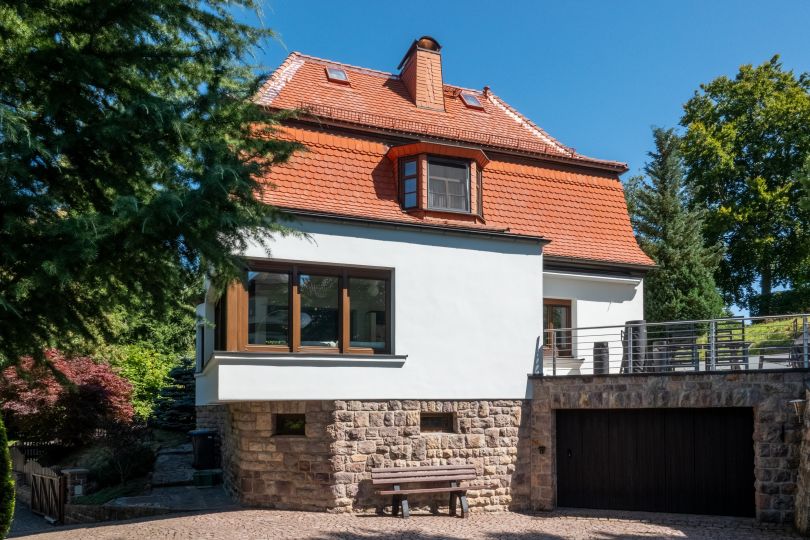 Diese beeindruckende Villa in Augustusburg, die sich über vier Etagen erstreckt, ist ein wahres Juwel für jede Familie, die nach Komfort, Stil und Lebensqualität strebt. Hier verwirklichten sich Architekten ihren ganz individuellen Traum und achteten bei der Sanierung auf Authentizität, was an dem imposanten Krüppelwalmdach mit der weithin strahlenden roten Eindeckung in Biberschwanz unverkennbar ist. Beim Betreten des Hauses werden Sie sofort von der einladenden Atmosphäre empfangen. Der offene Wohn- und Essbereich wird durch einen eleganten, gekachelten Kamin bereichert, der an kühlen Abenden Wärme und Gemütlichkeit spendet. Große Fensterflächen sorgen für lichtdurchflutete Räume und schaffen eine nahtlose Verbindung zum Außenbereich mit seinen Blickachsen auf Wälder und den Kurpark. Angrenzend finden wir ein Meisterwerk des Tischlerhandwerks, eine hochwertige Einbauküche, in der Alles gedacht wurde, um das Kochen zu einem Vergnügen zu machen. Die großzügige Arbeitsfläche bietet ausreichend Platz für die Zubereitung von Familienmahlzeiten oder das Backen mit Kindern. Die Villa verfügt über mehrere Schlafzimmer, die viel Raum für Privatsphäre und individuelle Gestaltung bieten. Jedes Zimmer zeichnet sich durch Helligkeit und eine beruhigende Ausstrahlung aus, perfekt für erholsamen Schlaf und persönliche Rückzugsorte. Im Untergeschoss erwartet Sie der exklusive Wellnessbereich mit Sauna, beheiztem Whirlpool, einer Regendusche – Ihr privates Spa, das zur Erholung und Regeneration einlädt. Besonderes Augenmerk verdient der ausgebaute Dachspitz. Ehemals als Büro genutzt, bietet er flexible Gestaltungsmöglichkeiten, sei es als zusätzlicher Leseraum, Spielzimmer für Kinder oder als kreativer Arbeitsbereich im Studiocharakter. Die technische Ausstattung des Hauses lässt keine Wünsche offen: Eine effiziente Klimaanlage in Wohnzimmer und Dachboden sorgt auch an heißen Tagen für angenehme Temperaturen. Die Heizung wurde unlängst auf effiziente Gas-Brennwerttechnik umgerüstet. Die moderne Alarmanlage mit Videotechnik gewährleistet Sicherheit rund um die Uhr. Rollläden an den Fenstern bieten zusätzlichen Komfort und Privatsphäre. Ein weiterer praktischer Aspekt ist der geräumige Waschraum, der genügend Platz für Waschmaschine und Trockner sowie für die Lagerung von Haushaltsutensilien bietet. Nicht zu vergessen die geräumige Garage, die neben Platz für Fahrzeuge auch Stauraum für Fahrräder, Werkzeuge und Gartengeräte gewährt. Die umfassende Sanierung des Hauses und die spätere Modernisierung im Jahr 2021 bilden den hohen Qualitätsstandard. Hochwertiger Vinylbelag verleiht den Böden nicht nur ein ästhetisches Aussehen, sondern garantiert auch Langlebigkeit und leichte Pflege. Ein weiteres Highlight ist die große Terrasse mit neuem Steinbelag. Sie ist ideal für sommerliche Grillabende, gemütliche Kaffeerunden am Nachmittag oder einfach zum Entspannen in der Sonne, während die Kinder im Garten spielen. Eine elektrische Markise bietet Schutz an sonnigen Tagen. Kurz gesagt, dieses Haus bietet alles, was sich eine Familie wünschen kann: Stil, Komfort, Sicherheit und eine Fülle von Möglichkeiten, das Leben in vollen Zügen zu genießen. Hier vereinen sich Funktionalität und Ästhetik zu einem perfekten Zuhause.