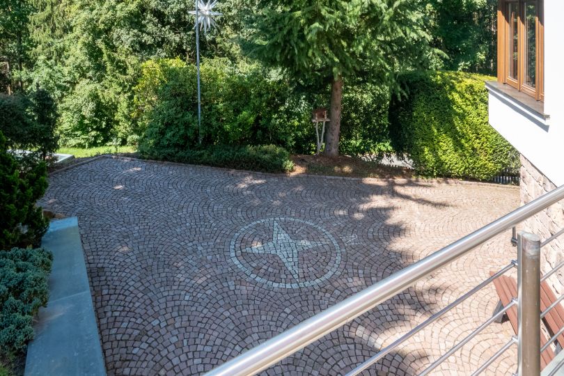Als Eckgrundstück gelegen, bietet das Grundstück eine beeindruckende Größe und eine ruhige, unverbaute Umgebung, die den idealen Rahmen für ein harmonisches Familienleben bildet. Besonders hervorzuheben ist der Blick auf das historische Schloss Augustusburg, der besonders vom ausgebauten Dachspitz aus zu genießen ist. Dieser atemberaubende Ausblick, der die Jahreszeiten in ihrer ganzen Pracht einfängt, sorgt täglich für einzigartige und unvergessliche Momente. Das Grundstück verfügt zudem über eine zusätzliche, bereits befestigte Fläche, die großes Potential für weitere Projekte bietet. Mit einer bestätigten Bauvoranfrage eröffnet sich hier die Möglichkeit, individuelle Träume zu verwirklichen. Ob der Bau eines Swimmingpools, um an heißen Sommertagen Abkühlung zu finden, die Errichtung einer zusätzlichen Garage für Liebhaberfahrzeuge oder sogar die Errichtung eines weiteren Hauses – die Optionen sind vielfältig und bieten Raum für Kreativität und Entwicklung. Die sorgfältige Pflege des Grundstücks spiegelt sich in jedem Winkel wider. Mit Naturstein gepflasterte Wege und Zufahrten, machen das Haus und die Doppelgarage zugänglich.