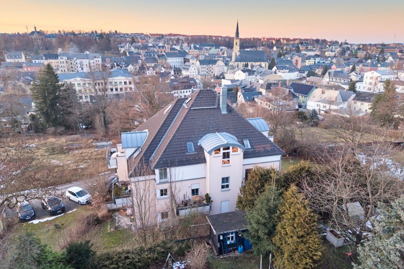 repräsentative, sanierte Fabrikantenvilla mit historischem Charakter, modernes Mehrfamilienhaus in gefragter Wohnlage, großzügiges Gesamtgrundstück mit weiterem Entwicklungspotenzial, voll vermieteter Bestand ohne akuten Sanierungsrückstau, attraktive und nachhaltige Mieterstruktur, ruhige Seitenstraßenlage mit Zentrumsnähe, unverbauter Weitblick durch leichte Hanglage, hochwertige und langlebige Ausstattungsstandards, Garagen und Stellplätze auf dem Grundstück