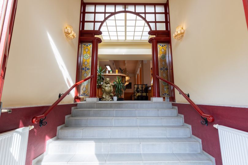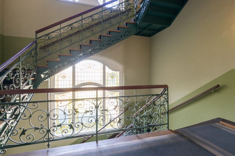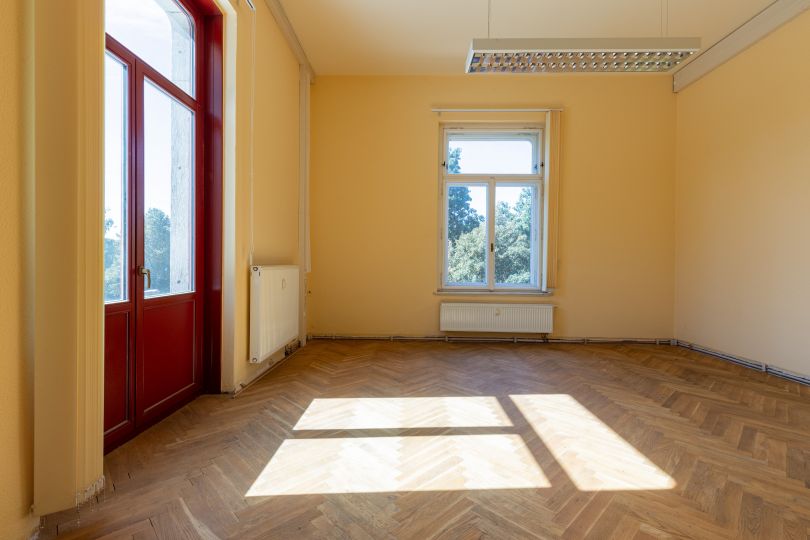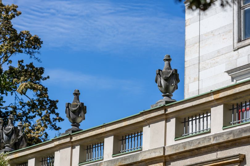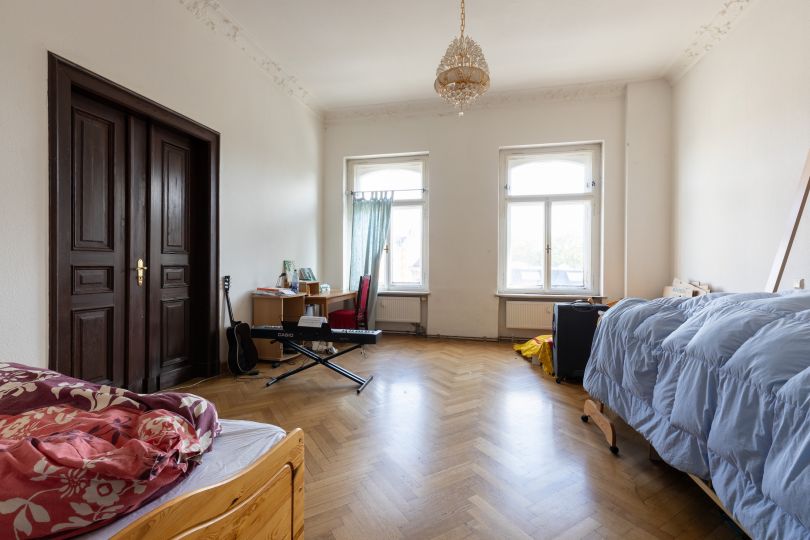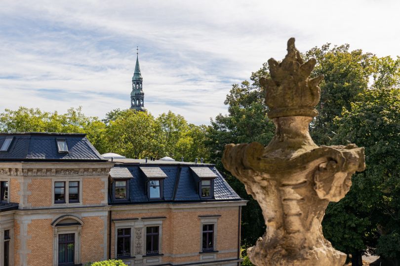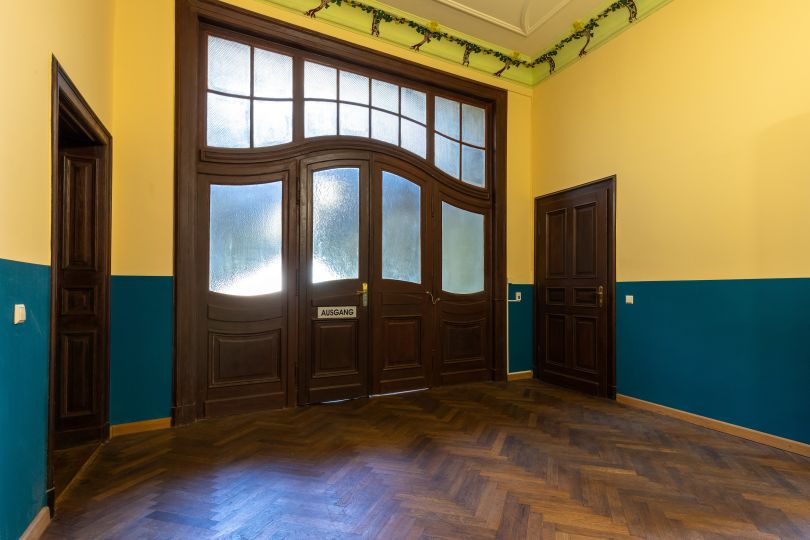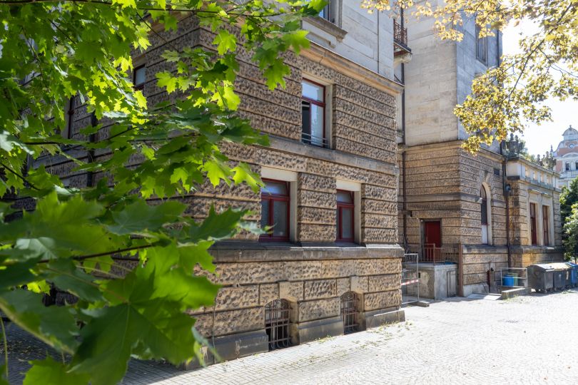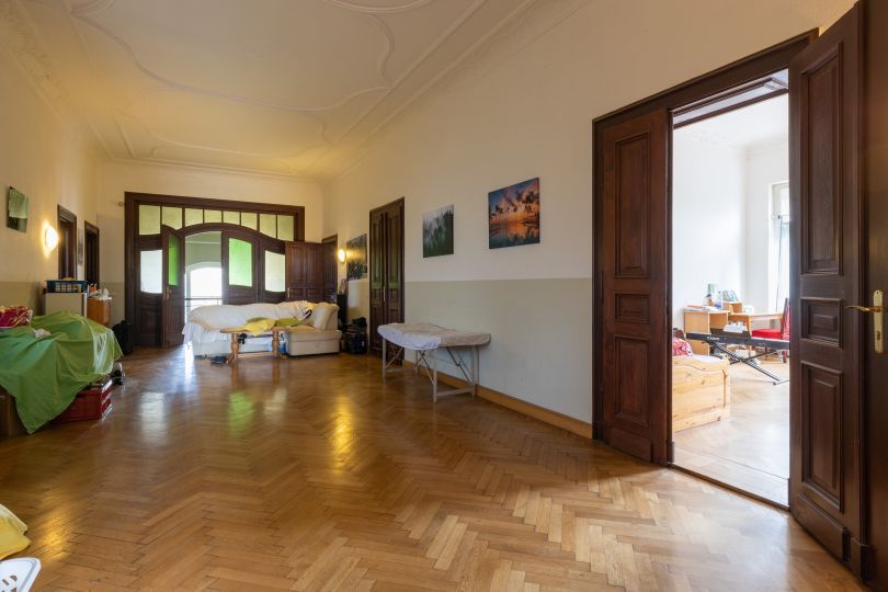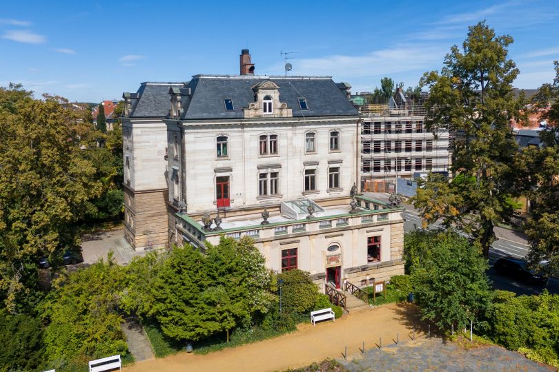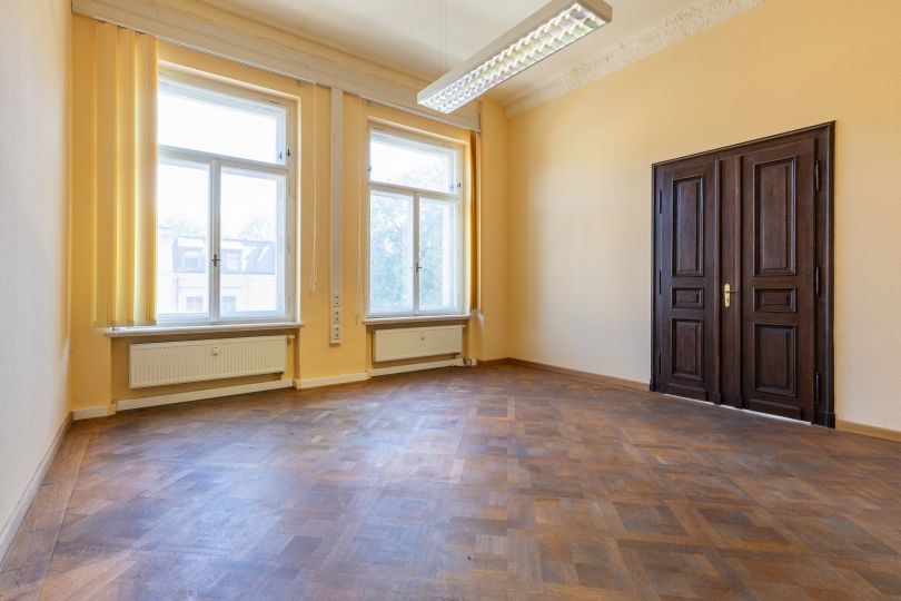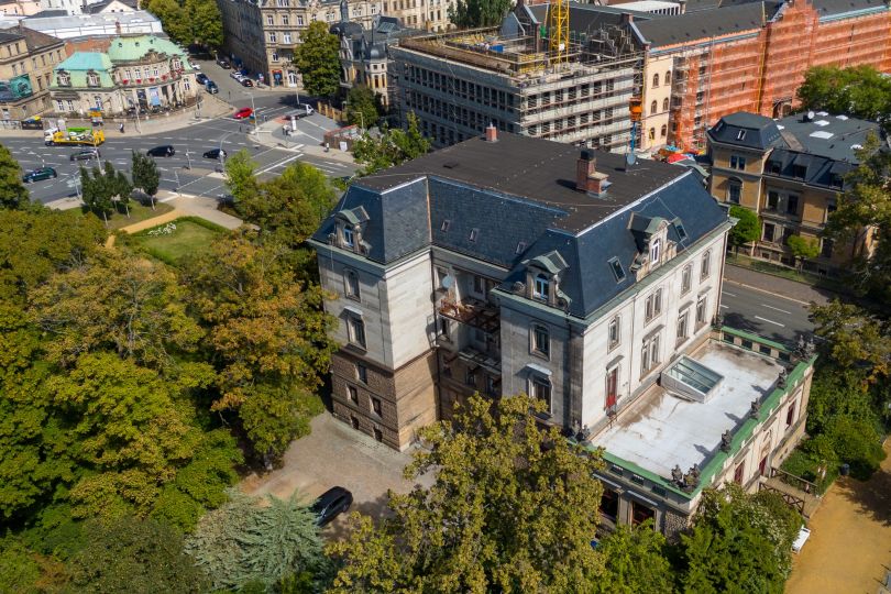 neobarockes Bankgebäude, repräsentative Sandsteinfassade, ausbaufähiges Dachgeschoss mit zusätzlichem Potenzial, großzügige Raumhöhen, originales Parkett, eindrucksvolles Treppenhaus mit Schmiedeeisen-Geländer, besondere Stuckarbeiten, prominente Lage im Schwanenteichpark, sehr gute Anbindung an Innenstadt, Kultur, Einkaufsmöglichkeiten und ÖPNV