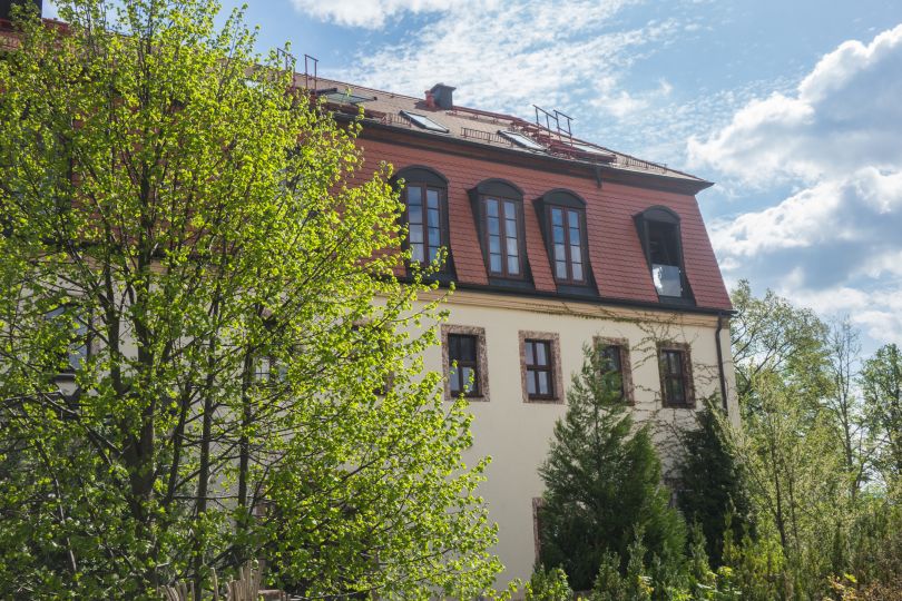 Auf dem ca. 827 m² großen Grundstück wurde 2007 der östliche Teil des ehemaligen Rittergutes aufwendig saniert. Direkt angrenzend an den Schlosspark bietet sich den Bewohnern ein atemberaubender Ausblick auf die liebevoll gestaltete Anlage und die umliegende Landschaft. In den Monaten, wo die herrschaftlichen Bäume sich ihrem Blätterkleid entledigt haben, können Sie bis zum Ortsteil Braunsdorf sehen.