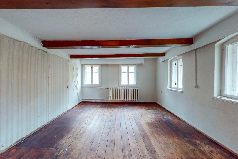 Das Einfamilienhaus bietet Platz auf insgesamt drei Etagen zur Verwirklichung Ihrer individuellen Vorstellungen. In das Haus gelangen Sie über den charmanten Haupteingang und den Garteneingang. Im Erdgeschoss finden Sie neben einem geräumigen Tageslichtbad, ein Gäste WC, die Küche und das helle, angrenzende Wohnzimmer. Außerdem ist der Zugang zum Anbau mit integrierter Garage und Abstellraum möglich. Über die Holztreppe erreichen Sie das Obergeschoss mit insgesamt drei Zimmern für Schlaf-, Kinder- und Arbeitsräume. Das Dachgeschoss ermöglicht die Schaffung von weiterem Wohnraum. Insgesamt vier großzügige Räume und einen kleinen Abstellraum bietet viel Platz für Ihre individuellen Wohnideen. Für Ihre persönlichen Dinge finden Sie auf dem Dachboden reichlich Fläche. Nutzen Sie jetzt die Chance und schaffen Sie sich Ihren eigenen Wohntraum in beliebter Lage.