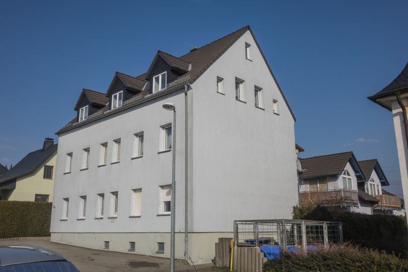 Auf dem ebenen, am Feld in einer Sackgasse gelegenen Grundstück befinden sich zwei Mehrfamilienhäuser einer Eigentümergemeinschaft. Das vordere Haus beinhaltet die zum Verkauf stehenden Wohneinheiten. Zu diesen ist neben den Stellplätzen vor dem Haus eine Garage zugeordnet.