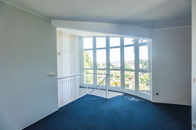 Das herrschaftliche Haus teilt sich in drei Etagen auf. Das Erdgeschoss und das erste Obergeschoss sind mit je vier Büroräumen, Küche und WC durchdacht ausgestattet. Im Dachgeschoss erstreckt sich der großzügige Seminarraum mit kleiner Küche und angrenzendem WC. Zusätzlich wurden hier zwei weitere Arbeitsräume mit traumhaftem Ausblick integriert. Über eine separate Treppe gelangen Sie von den Räumen in das erste Oberschoss. Im Keller finden Sie auf ca. 162 m² Fläche viel Stauraum für Ihr Archiv. Während der Hausplanung wurden bereits die Räume und Leitungsanschlüsse so angeordnet, dass nur wenige Handgriffe nötig sind, um das Bürogebäude in ein modernes Mehrfamilienhaus umzunutzen. Die lichtdurchfluteten Räume bieten neben den großzügig gestalteten Fensterfronten einen spektakulären Blick ins Grüne. Hier wird das Arbeiten und Wohnen zum Erlebnis. Annehmlichkeiten wie die bereits installierten Außenjalousien im Erdgeschoss runden das Angebot ab.