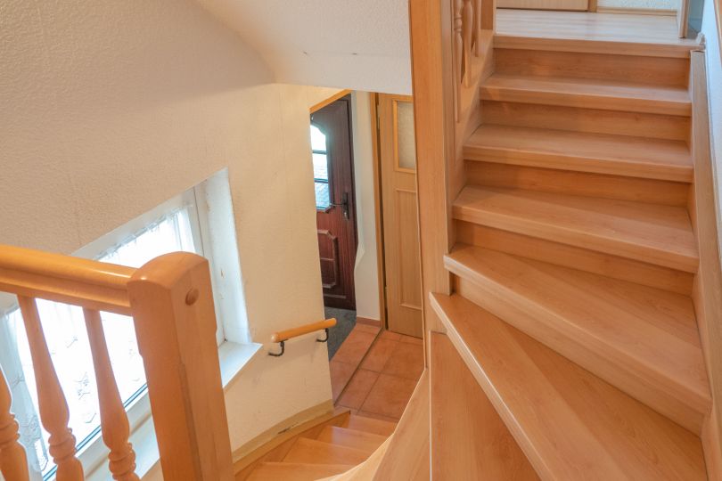 Der Wohnraum dieser entzückenden Doppelhaushälfte verteilt sich auf zwei großzügig geschnittenen Etagen. Im Erdgeschoss finden Sie ein schönes Tageslichtbad mit Badewanne, ein geräumiges Wohnzimmer sowie eine Einbauküche vor. Die gut erhaltene Wendeltreppe führt Sie zum Obergeschoss. Hierbei gelangen Sie auf „halber Ebene“ zu einem weiteren Raum, welcher sich zwischen Erd- und Obergeschoss befindet. Dank zahlreicher Fenster wäre hier eine Nutzung als Wintergarten oder Arbeitszimmer mit Blick in Ihren grünen Garten denkbar. Das Obergeschoss beinhaltet zwei großzügig geschnittene, helle Schlafzimmer, welche sich ausgezeichnet zur Umsetzung Ihrer Vorstellungen und Wünsche eignen. Das Dachgeschoss ist aktuell in jeweils drei Räume unterteilt. Durch geschickte Umbaumaßnahmen kann die Erweiterung der Wohnfläche erzielt werden, wodurch weitere individuell nutzbarer Raum geschaffen wird. Der praktische Keller rundet diese Doppelhaushälfte ab. Hier befinden sich der Heizraum mit darin befindlicher Heizungsanlage und Erdöl-Speichern sowie ein Waschraum mit angelegtem Zugang zu Ihrem Garten. Nutzen Sie Ihre Möglichkeit, dieses bezaubernde Haus in Ihren Traum zu verwandeln.