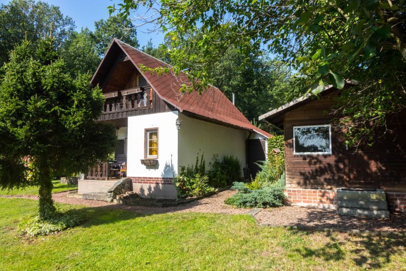 Umringt von Wäldern mit Spazier- und Wanderwegen befindet sich dieses sehr gepflegte, ca. 1.499 m² große Erholungsgrundstück. Der weitläufige Garten bietet abwechslungsreiche Möglichkeiten, um aktiv zu sein und sich in der Waldluft zu erholen. An heißen Sommertagen springt man gern in das kühle Nass des überdachten Pools und verbringt eine wundervolle Zeit bei Festen mit Freunden und der Familie unter freiem Himmel. Gäste, die Sie trotz der Möglichkeit einer unkomplizierten Heimfahrt mit dem Auto oder öffentlichen Verkehrsmitteln nicht verlassen wollen, übernachten ganz einfach im gemütlichen, zusätzlichen Gästehaus. Die überdachte Terrasse verlängert die Abende bei einem guten Wein und schützt vor kleinen und größeren Tröpfchen von Oben. Auch der Winter zeigt sich nach dem entspannenden Gang in die holzbefeuerte, gemütliche Sauna und bei einem guten Buch am wärmespendenden, offenen Kamin des Wochenendhauses von seiner angenehmsten Seite. Für jede Altersgruppe bieten sich vielseitige Erholungsmöglichkeiten. Der Wohnbereich im liebevoll, massiv errichteten Haupthaus kann zusätzlich mit einem Ofen beheizt werden. Der Kamin verfügt über ein Umluftgebläse. Der kleine, feine Schlafboden verspricht schöne Träume und man begrüßt den Tag mit einem Blick in die Natur vom sich anschließenden Balkon. Eine ganzjährige Nutzung dieses traumhaften Objektes als Zweitwohnsitz ist denkbar. Zu empfehlen wäre die Modernisierung der Sanitärausstattung und eine abwasserseitige Erschließung. Hierzu liegen die Bestandspläne bereits vor. Das Häuschen und die Nebengelasse befinden sich in einem gepflegten, altersentsprechenden Zustand und können mit wenigen Handgriffen in Ihr persönliches Traumdomizil verwandelt werden. Ergänzt wird das bezaubernde Ensemble durch eine geräumige Garage, Stellplätze und nützliche Abstellmöglichkeiten. Am Rand des Grundstückes plätschert der Riedbach und lädt Sie ein, einfach zu sich selbst zu finden - wir ebenfalls!