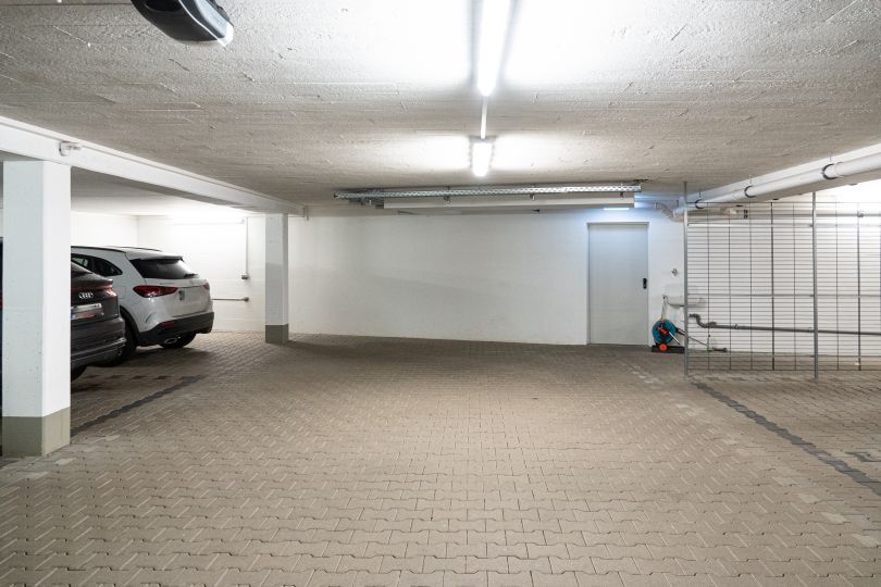 Umringt von historischen Wohnhäusern und hoch gewachsenen Bäumen fügt sich das Grundstück elegant in die Umgebung ein. Auf dem herrschaftlichen Grundstück führt die modern gestaltete, breite Einfahrt zur Tiefgarage. Für die Einheit sind zwei Stellplätze vorhanden. Der Whirlpool auf der großflächigen Terrasse bietet zusätzlichen Komfort und den entspannten Ausgleich vom Allta