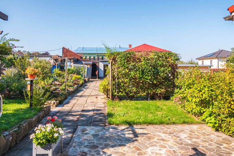 Eine Terrasse lädt zu gemütlichen Stunden im Freien ein und bietet ausreichend Platz für Grillabende und das Frühstück an sonnigen Tagen. Der gepflegte Garten befindet sich zwischen dem Haus und der großzügigen Garage, was eine geschützte und private Atmosphäre schafft. Der Garten ist leicht zu pflegen und bietet dennoch genug Raum für individuelle Gestaltungsidee.