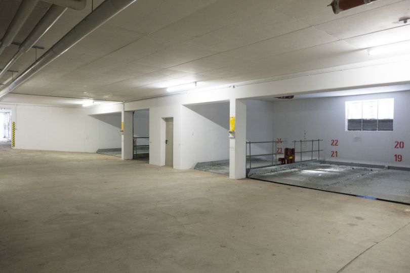 Auf dem ca. 1.297 m² großen Grundstück stehen zusätzlich zur Tiefgarage weitere Stellplätze und die Möglichkeit einer reibungslosen Anlieferung zur Verfügung. Eine Umfahrung des Objektes wird ermöglicht und im vorderen Teil durch eine Schranke gesichert.